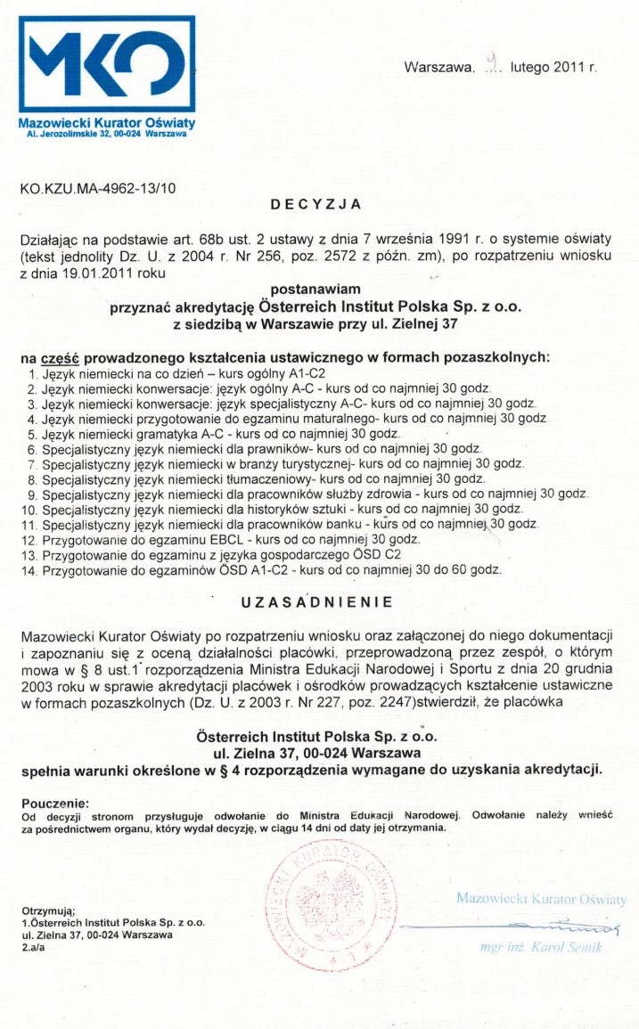 1. Akredytacja Kuratorium Oświaty w Warszawie